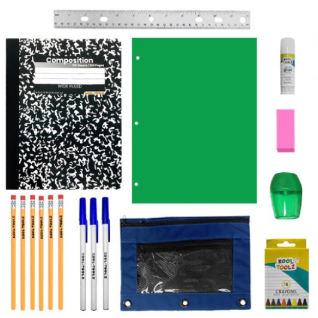 32 Piece universal bulk school supply kit is perfect for any grade. Let the kids start the school year with the basic writing tools needed. Each bulk school supply kit is individually packed with the following supplies: